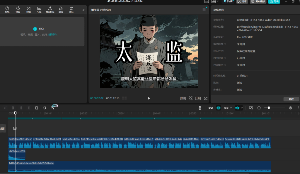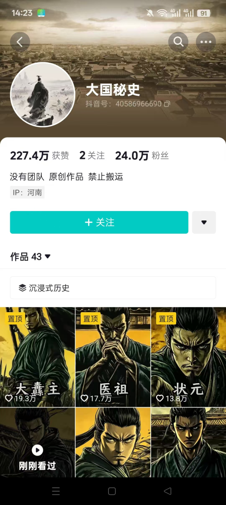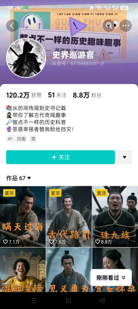 最近发现一批用AI剪辑的历史视频,短短的40多个作品,吸粉高达20万+,这一点引起了我的好奇心,所以我也深入的研究了一下,五分钟的时间做出了一个视频,而且效果还真的非常明显,不信,你看?