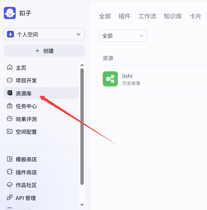 第三步:打开扣子官网“https://www.coze.cn/home”点击左侧“资源库”。