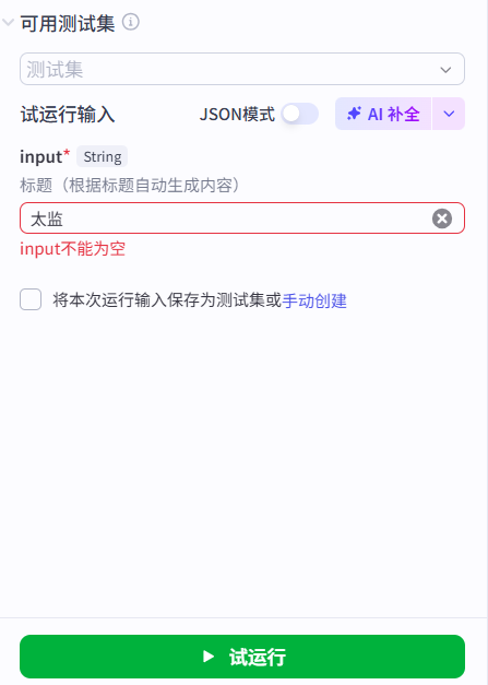 第六步:点击试运行后,右边会多一个菜单,那么在菜单里面只需要输入标题,那么这里我输入的标题是“太监”。